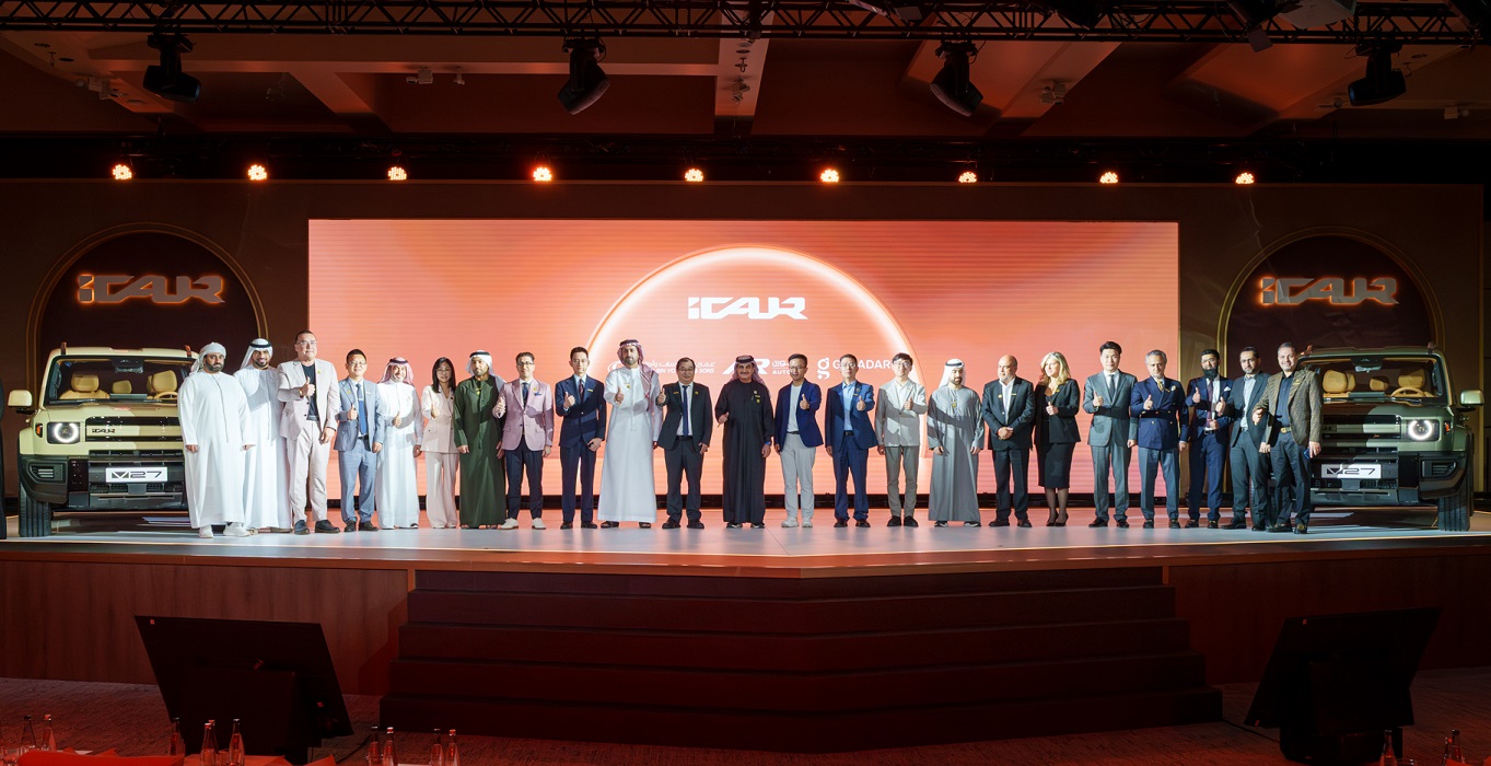 图为2月8日,iCAR V27在阿联酋迪拜全球首发上市